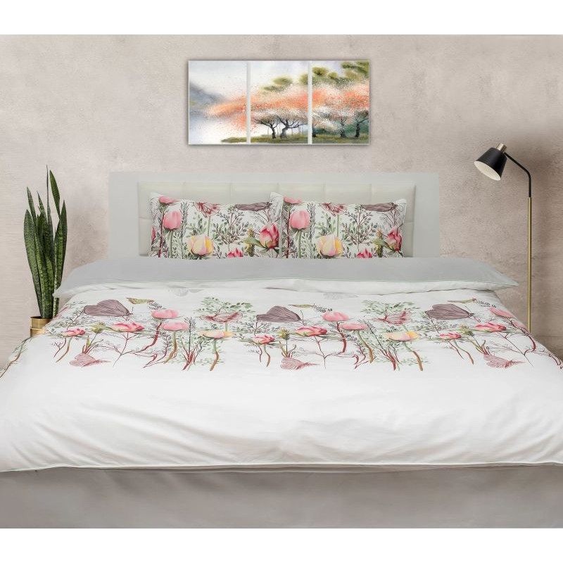 Потопете се в лукс с този изискан спален комплект от сатениран памук от Nani.bg. С неговата мека и дишаща материя, украсена с деликатни флорални мотиви и елегантно завършена с декоративно въже, този спален комплект съчетава перфектно стил, качество и комфорт. Внесете нотка елегантност и топлина във вашия дом с този красиво проектиран комплект за спалня.