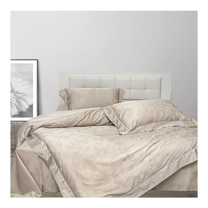 Спален комплект ТЕНСЕЛ "Калиста" от Roxyma Dream ще внесе стил, красота и уют във вашата спалня. Изработен от висококачествена материя, тя осигурява максимален комфорт по време на сън, като обгръща тялото с мекота и елегантност. Деликатният цвят и красивата жакардова сплитка придават луксозно излъчване, а периферията и стилният паспел на плика и калъфките са израз на премиум дизайн.
