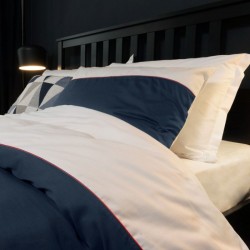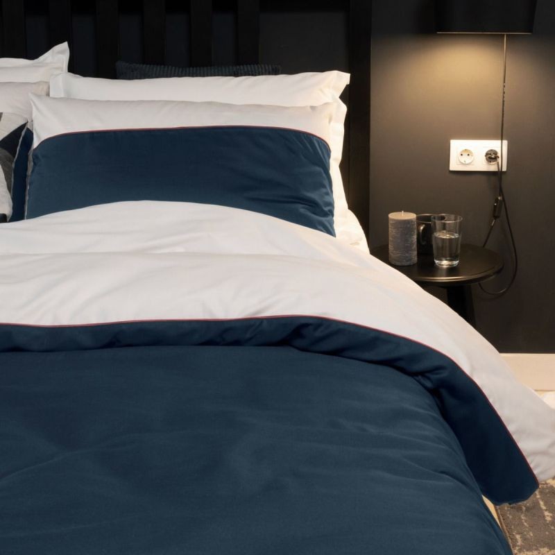 Лукс спално бельо от памучен сатен с паспел 2 части, СИНЬО/ Бяло