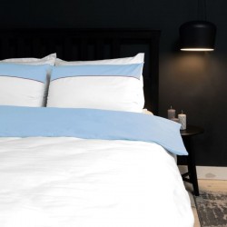 Лукс спално бельо от памучен сатен с паспел 2 части, Св СИН/Бяло