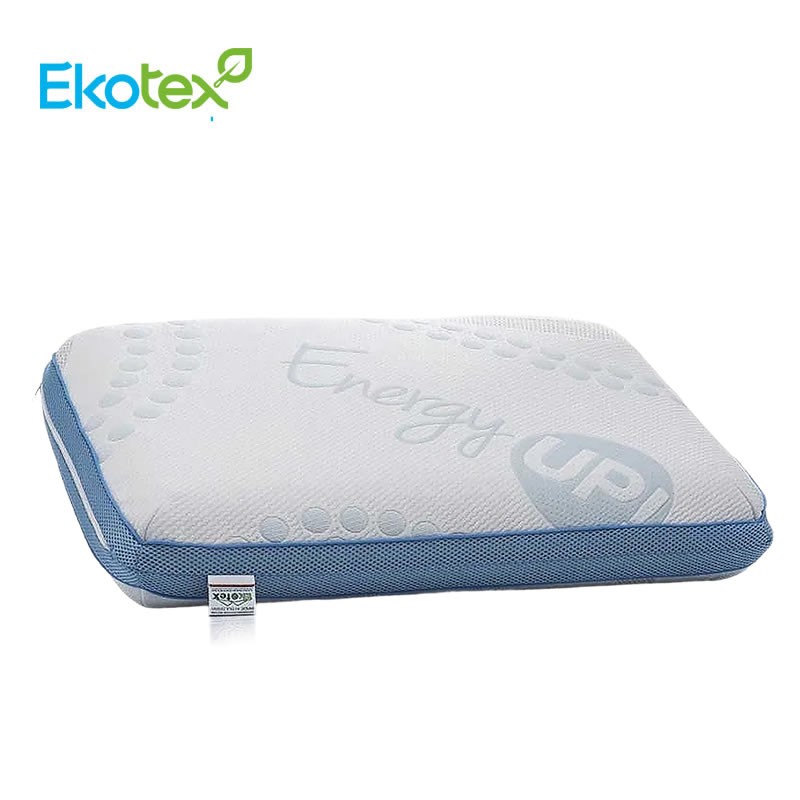 Възглавницата е снабдена с 3D мрежа за оптимална вентилация на въздуха във вътрешността на възглавницата и практичен сваляем калъф от тъкан плат Energy Up. Луксозен небесносин паспел завършва цялостната визия на този изискан дизайн.