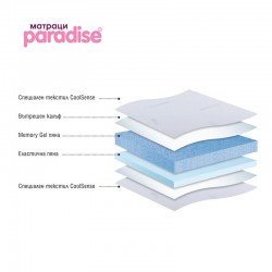 Модел Кулсенс Мемори Гел има двупластово ядро от Memory пяна с охлаждащи гел капсули и HD пяна. Това дава възможност за избор на различно усещане за комфорт от двете страни на топ матрака. Предлага се със сваляем калъф с цип от висококачествен текстил CoolSense - изключително мека и приятна на допир “дишаща" материя, която осигурява отлична терморегулация на тялото по време на сън.