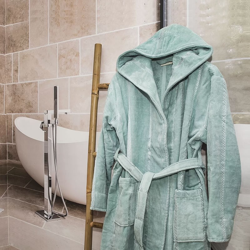 Изживейте лукса с мъжкия халат Моника - вашата ежедневна доза мекота и комфорт след баня. Изработен от 100% висококачествен памук с грамаж 400 гр/кв.м., той гарантира отлична попиваемост и нежно докосване до кожата. Предлага се в елегантна опаковка, идеална за подарък.