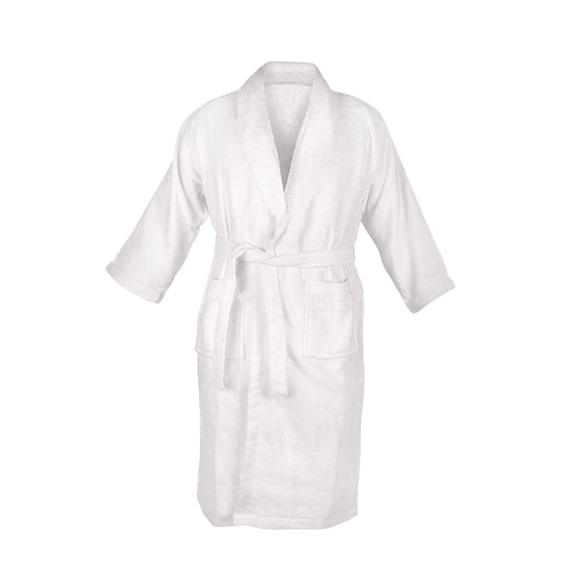 Дизайнът на този халат включва класическа кройка с шал яка и два външни джоба, което го прави едновременно стилен и функционален. Неговата универсална привлекателност го прави идеален както за хотелиерството, така и за лична употреба, а това е отличен избор за тези, които ценят лукса и комфорта.