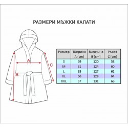 Изживейте лукса с мъжкия халат Моника - вашата ежедневна доза мекота и комфорт след баня. Изработен от 100% висококачествен памук с грамаж 400 гр/кв.м., той гарантира отлична попиваемост и нежно докосване до кожата. Предлага се в елегантна опаковка, идеална за подарък.