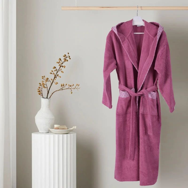 Халатът за баня "ШИК с качулка" съчетание между луксозна функционалност и модерен дизайн. Изработен изцяло от 100% памук с плътност 500 гр./м², този халат предлага изключителна мекота, издръжливост и бързо абсорбиране на влага, което го перфектен избор след всяко къпане или релакс в банята. Качулката добавя допълнителен комфорт, грижейки се за вашата уютна защита.