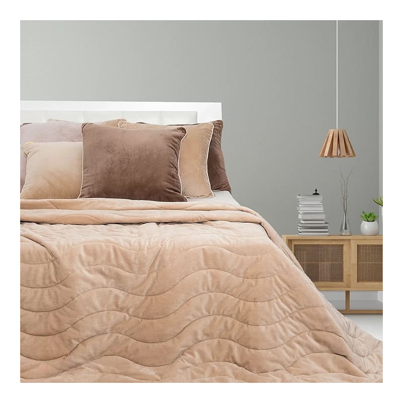Изработено с изключително внимание към детайла, това покривало от микроплюш е покрито с тънка вата и е обточено с красива бежов кант. Това завършващо докосване придава на продукта вид, който със сигурност ще впечатли гостите ви.