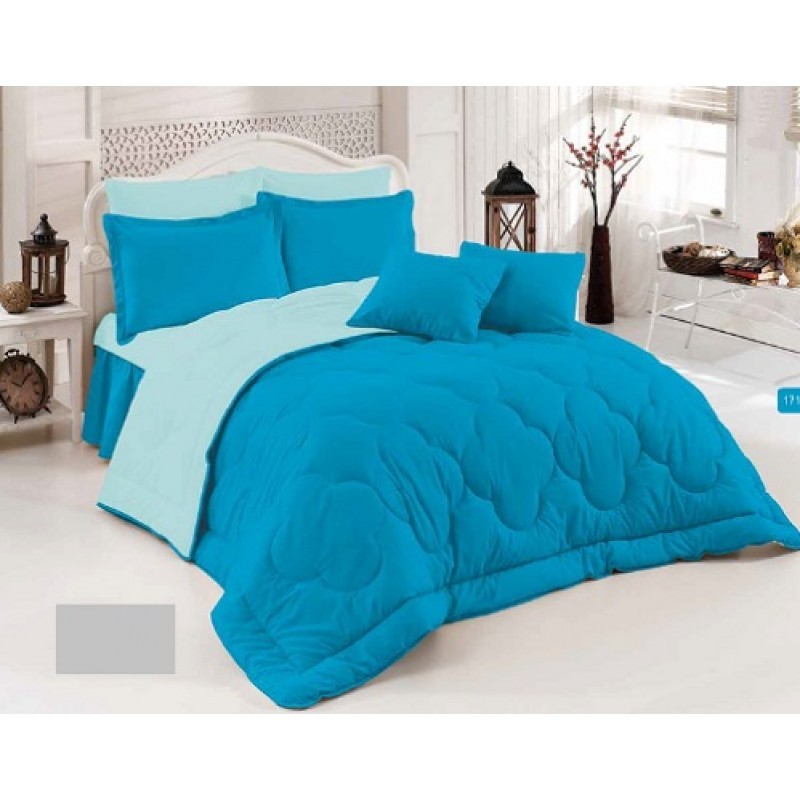 Памучно двулицвео шалте идеално за вашата спалня или детска стая. Свежите цветове внасят живот в спалнята. Кувертюрата може да се използва като покривало за легло или като тънка завивка.