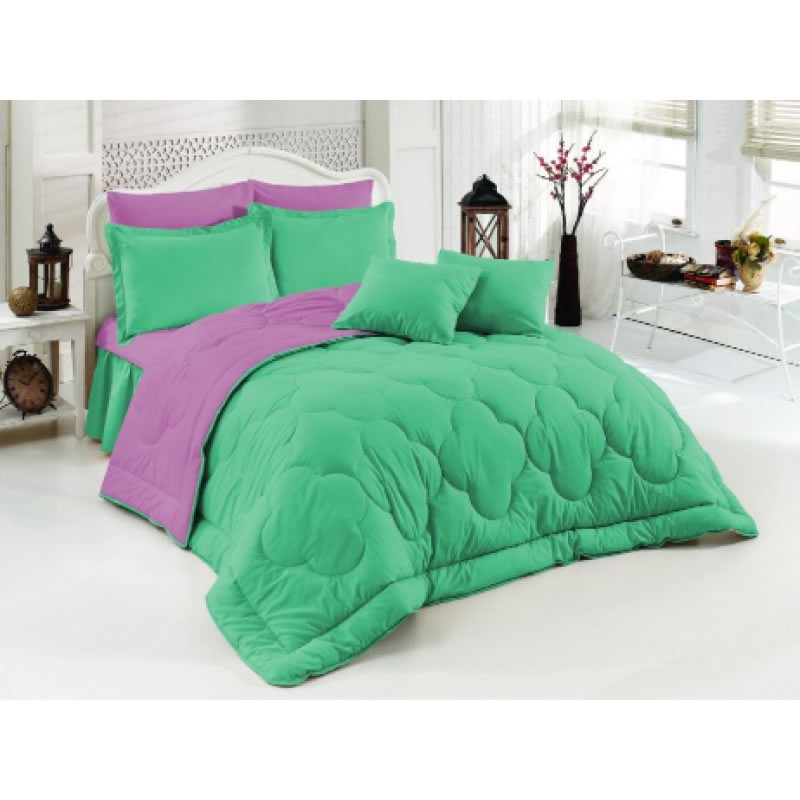 Памучно двулицвео шалте идеално за вашата спалня или детска стая. Свежите цветове внасят живот в спалнята. Кувертюрата може да се използва като покривало за легло или като тънка завивка.