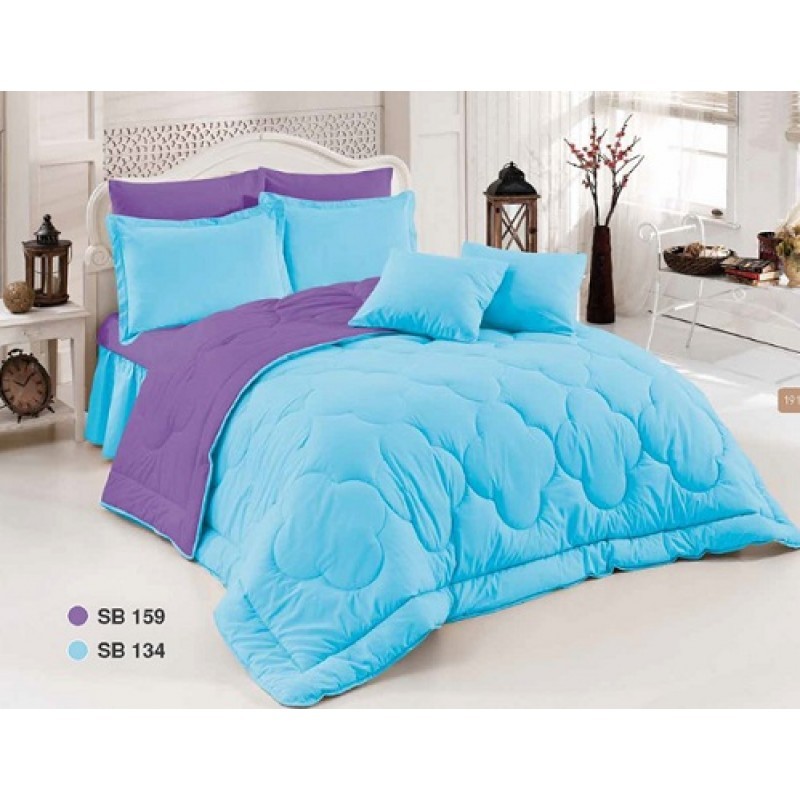 Памучно двулицвео шалте идеално за вашата спалня или детска стая. Свежите цветове внасят живот в спалнята. Кувертюрата може да се използва като покривало за легло или като тънка завивка.