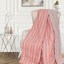 Тази кувертюра е в нежни ивици (райе) и е изработена от мека памучна материя (100% памук), която осигурява комфорт и стил.