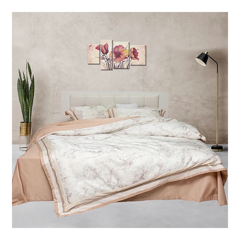 Луксозен спален комплект памучен сатен Мрамор, бежово