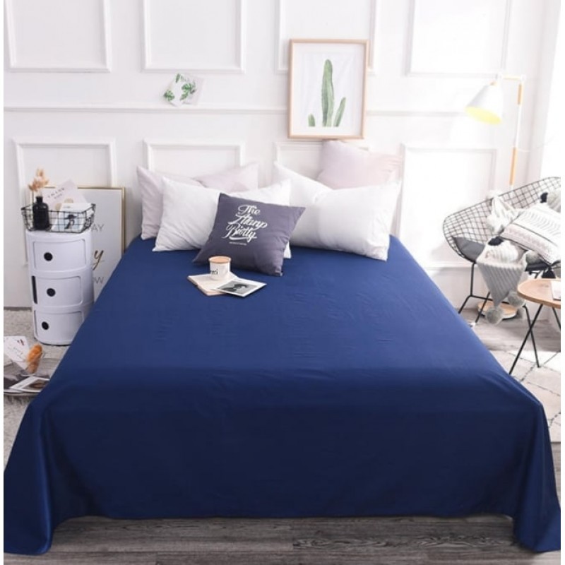 Едноцветен долен чаршаф ранфорс ТЪМНО СИНЬО