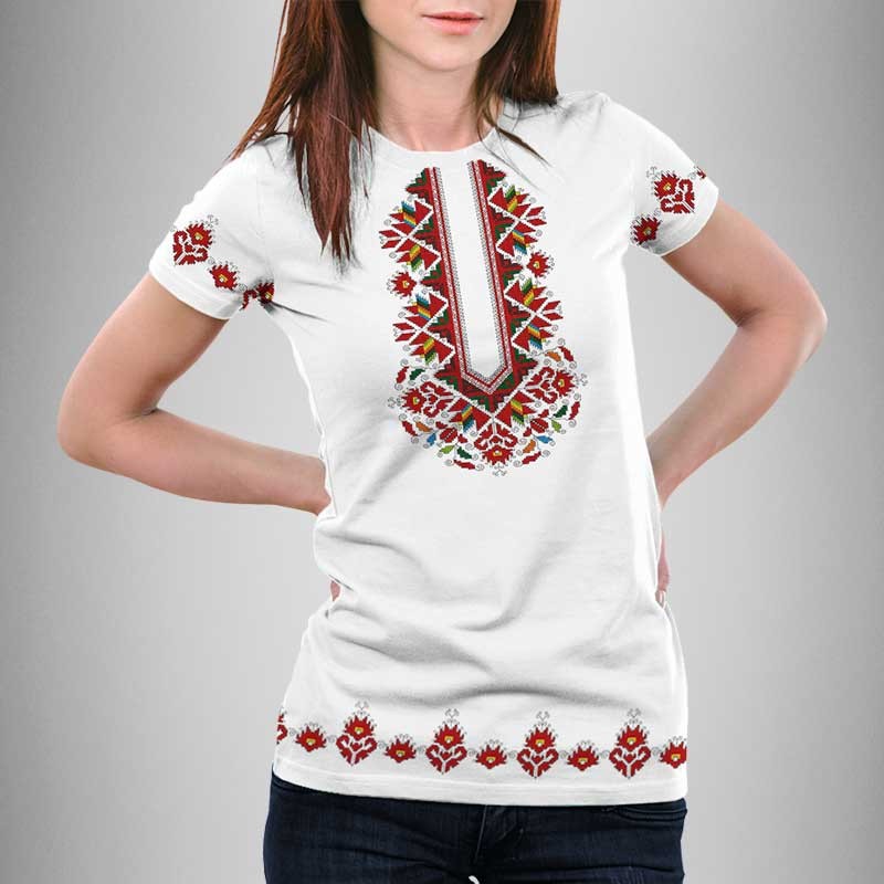 Дамската тениска с 3D принт с народни мотиви. Създадена от висококачествен памук, което я прави идеална за комфорт. Еластичността на тениската е 10%, което осигурява удобно прилепване към тялото и свобода на движение.
