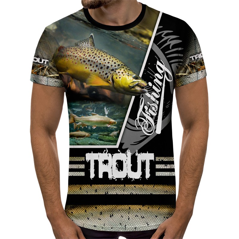 3D Мъжка тениска с рибарски мотиви Пъстърва