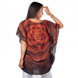 Стилен и ефирен модел, подходящ за всеки дамски силует. Моделът е атрактивен, изключително удобен. И е изработен от високо качествен шифон. Материята е лека и проветрива, но не прозира и не се разнищва. Авторският ни принт и лимитираната серия гарантират уникалност и идентичност на този модел.
