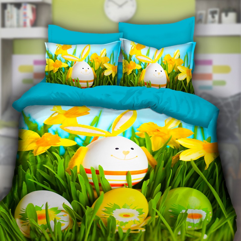 Ако търсите начин да направите този Великден весел и незабравим, вземете си великденски спален комплект. Създаден от качествена 100% памучна нишка, той ще осигури мек комфорт на тялото ви. Лицевата част на спалното бельо е изработена от мек и качествен 3D поликотън, който не губи формата си след многократни изпирания. Комплектът е наситен с живи цветове, които ще освежат всяка стая. За да запазите ярките цветове, не използвайте избелващи препарати и преместете на подходяща температура от 30 градуса. Насладете се на качествения сън и посрещнете Великден с усмивка и комфорт.