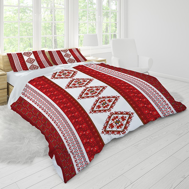 Материята, използвана за този мек и уютен спален комплект, е висок клас Поликотън. Поради своята устойчивост, материята запазва наситеността на цветовете и не губи формата си дори при многократни изпирания. Плътната и нежна нишка съдържа 80% памук и 20% полиестер. Плътността на плата позволява използването му както в зимния сезон, така и през летните горещини.