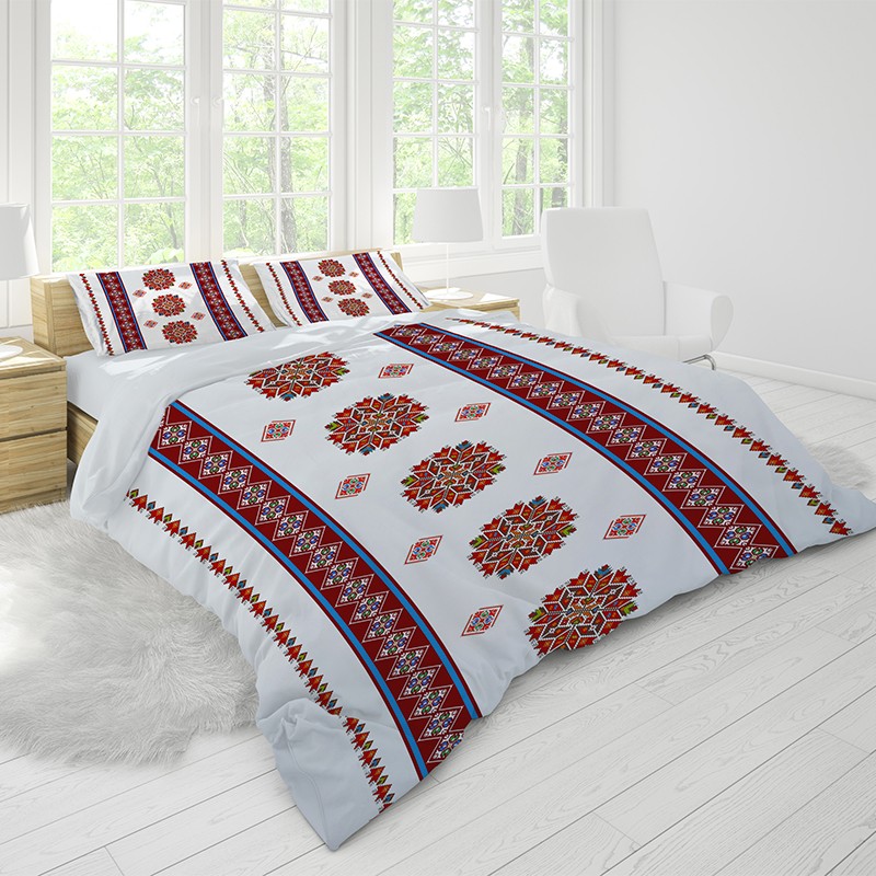 Материята, използвана за този мек и уютен спален комплект, е висок клас Поликотън. Поради своята устойчивост, материята запазва наситеността на цветовете и не губи формата си дори при многократни изпирания. Плътната и нежна нишка съдържа 80% памук и 20% полиестер. Плътността на плата позволява използването му както в зимния сезон, така и през летните горещини.