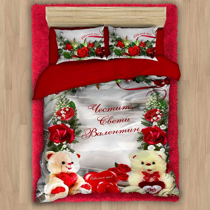 Материята, използвана за този мек и уютен спален комплект, е висок клас Поликотън. Поради своята устойчивост, материята запазва наситеността на цветовете и не губи формата си дори при многократни изпирания. Плътната и нежна нишка съдържа 80% памук и 20% полиестер. Плътността на плата позволява използването му както в зимния сезон, така и през летните горещини.