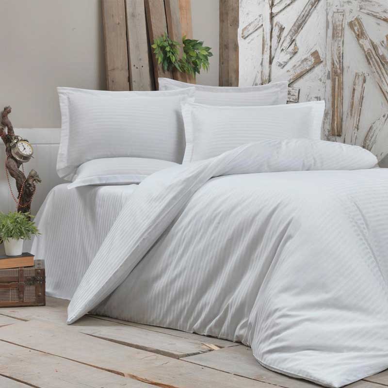 Луксозно спално бельо памучен сатен райе Снежина
